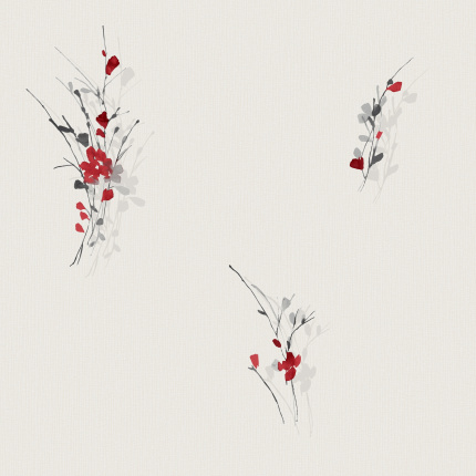 Papier peint vinyle expansé sur intissé - Aquarelle - Fleurs rouges