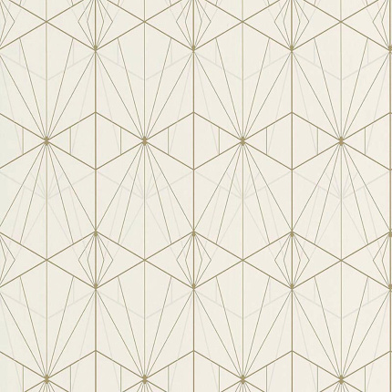 Papier peint vinyle sur intissé - Art déco - Crème motif géométrique or