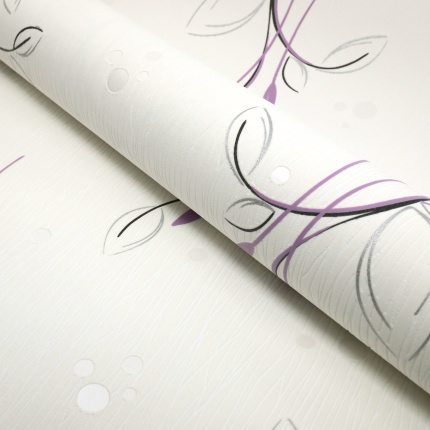 Papier peint vinyle expansé sur intissé - Basique - Motif floral violet pois satiné