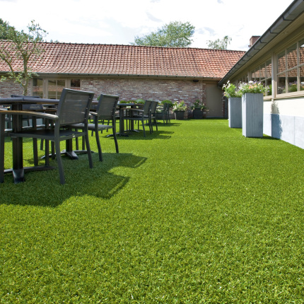 Le gazon synthétique Botanic Garden est conçu avec des fibres C-Shape nervurées très denses, d'une hauteur de 40 mm, pour une meilleure résilience. Ses fibres en forme de "C" permettent à ce gazon synthétique haut de gamme de reprendre sa forme. Il est pourvu d'un dossier souple, plus résistant que la plupart des envers de pelouses artificielles.