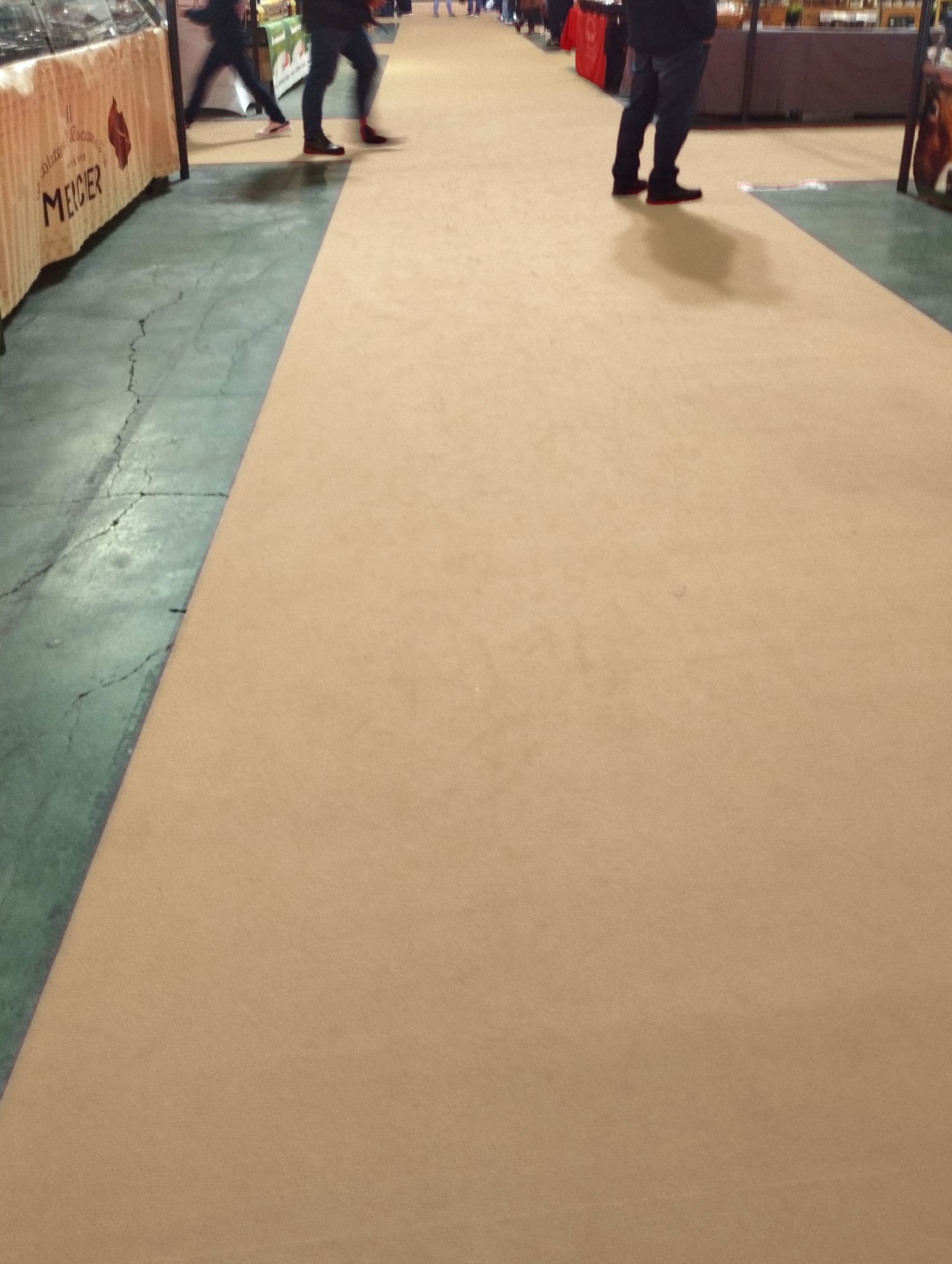 Utilisée pour protéger le sol lors d'une soirée avec un grand groupe. Facile à couper, aspect correct, couleur neutre, pas vraiment durable mais OK par rapport au prix/M2
