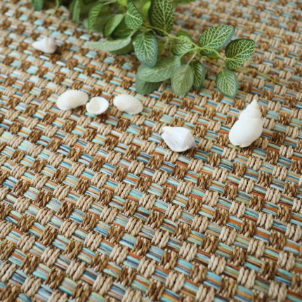 Chute de Moquette Tissé Plat - Népal Natté 4x4 - Nature Multicolor Bleu