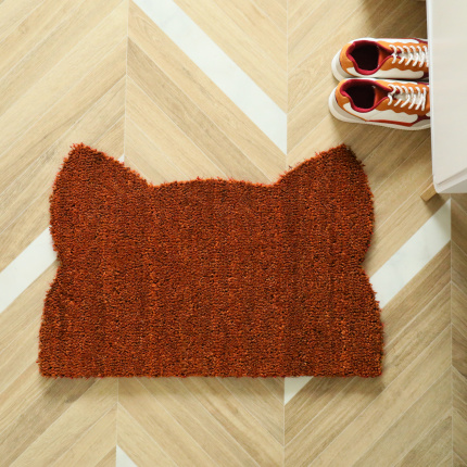 Paillasson Fibre naturelle de coco Tapis d’entrée Chat Miaou - Rouille & forme originale