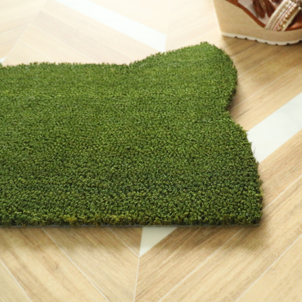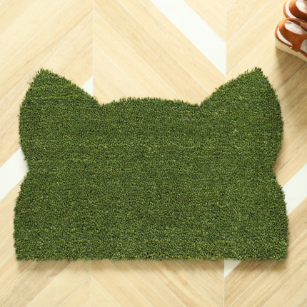 Paillasson Fibre naturelle de coco Tapis d’entrée Chat Miaou - Vert & forme originale