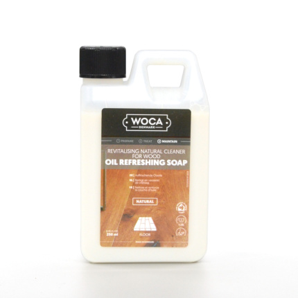 Le Savon Naturel convient parfaitement pour le nettoyage et l'entretien de surfaces traitées à l'huile ou à l'huile UV