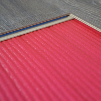 Sous-couche PE avec système stop humidité intégré et rainures de circulation. Assiste la circulation de l'air sous le sol empêchant la formation de moisissure. Épaisseur de la sous-couche : 3 mm.