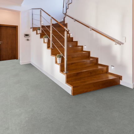 Ces dalles font partie des sols en vinyle rigide clipsable de dernière génération. Leur décor minéral est très réaliste et doté d’une finition mate, alliant esthétisme élégant et forte technicité. Le produit repose sur un support ultra fort, rigide et léger grâce à la technologie RCB, et intègre une sous-couche IXPE qui réduit le bruit de 18 dB. Ce revêtement de sol européen, de classe d’usage 23-33, convient à toutes les pièces de la maison, de la cuisine au salon, y compris les pièces humides, pour un usage résidentiel ou commercial intensif. La couche d’usure est de 0,55 mm.
