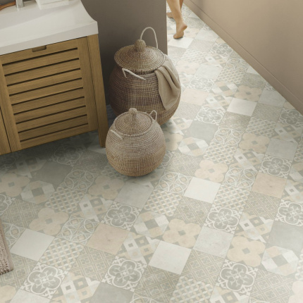 Sol PVC Best - Carreaux Art Déco - Crème et gris