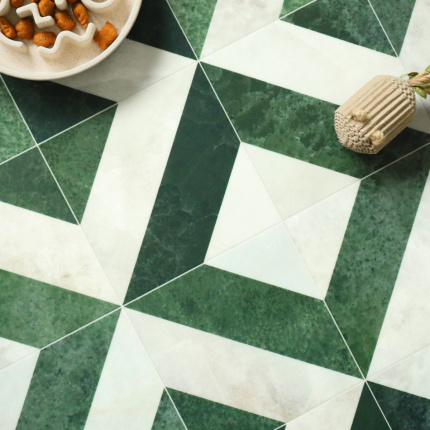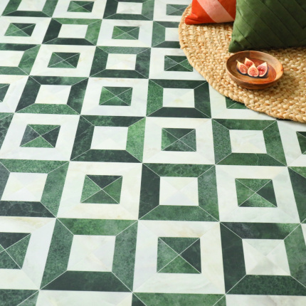 Sol en vinyle éco-conçu - Losanges de marbre - Blanc et vert