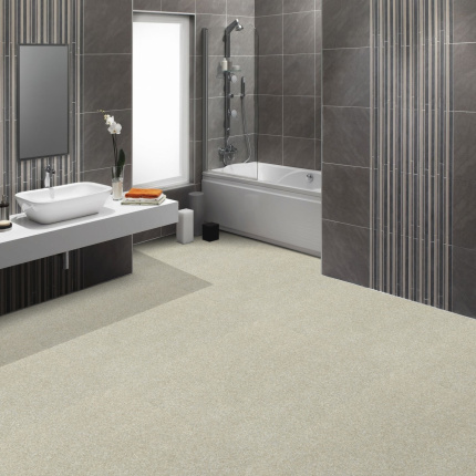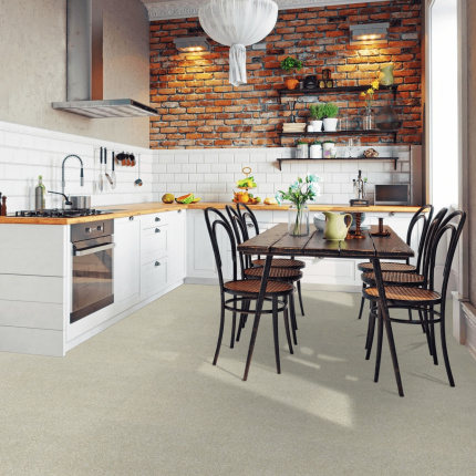 Facile à vivre, ce sol vinyle très résistant est conçu pour répondre aux besoins des personnes menant une vie à 100 à l’heure et souhaitant éviter les contraintes des taches ménagères quotidiennes. Doté d’une couche d’usure de 0,40 mm renforcée d’un traitement en polyuréthane, il résiste aux chocs, aux salissures courantes, aux griffes d’animaux de compagnie et aux chaises à roulettes. Son envers gris gaufré est un envers de qualité supérieure. Sans compromis, ce produit de style lino à la surface mate est très esthétique. Il offre un excellent confort de marche et une très bonne insonorisation. Ce revêtement de sol allie esthétique, hygiène et exigence en matière de qualité de fabrication ainsi que d’environnement. Commandez un échantillon pour voir ses beaux effets pailletés, lumineux et discrets.