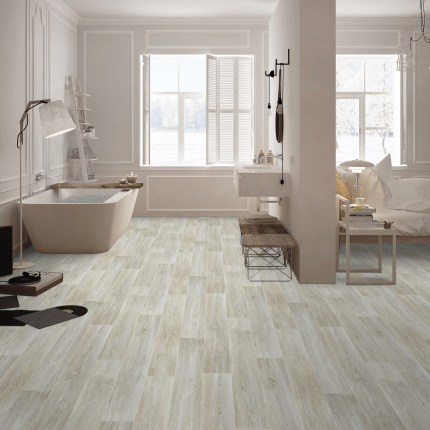 Sol lino, vinyle, PVC En rouleau Interior - Imitation parquet chêne scandinave blanchi