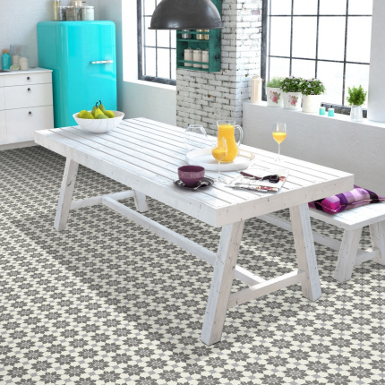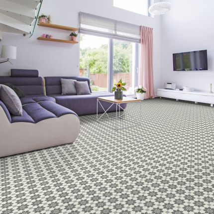 Sol Vinyle Link Plus - Carreaux de ciment motif gris - Surface brillante