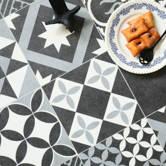 Sol Vinyle Link Plus - Carreaux de ciment noir et blanc - Surface brillante