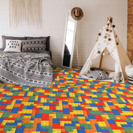 Sol Vinyle Style - Motif Puzzle jeu de briques multicolore