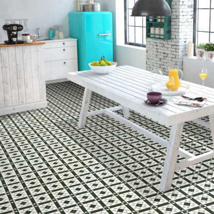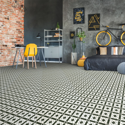 Sol Vinyle Style - Carreaux de ciment graphique - Noir et blanc