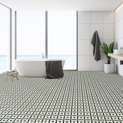 Sol lino, vinyle, PVC En rouleau Style - Effet carreaux de ciment graphique noir & blanc