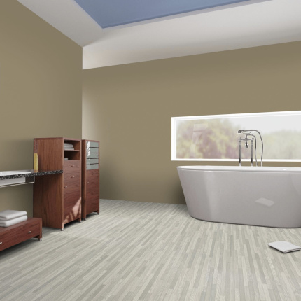 Ce sol vinyle à envers textile est un produit d’entrée de gamme, pour vous permettre de vous équiper à petit prix et de vous faire plaisir sans vous ruiner. Côté esthétique, son motif imite du parquet en chêne aux lames étroites, d’environ 3 cm de large, dans des tons gris doux et naturels. Ce revêtement de sol PVC, de type lino, est un produit de classe 21, il convient donc parfaitement pour une chambre ou un espace détente. Ce revêtement allie esthétique, hygiène, sécurité et répond aux exigences les plus strictes en matière de qualité de fabrication et d’environnement.