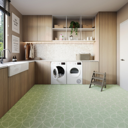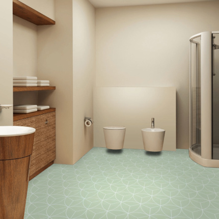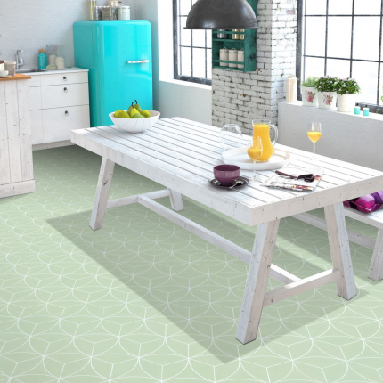 Sol Vinyle Textile économique - Rosace géométrique - Vert d'eau