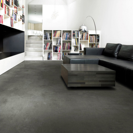 Sol lino, vinyle, PVC En rouleau Textile Haute Performance - Effet béton gris minéral foncé