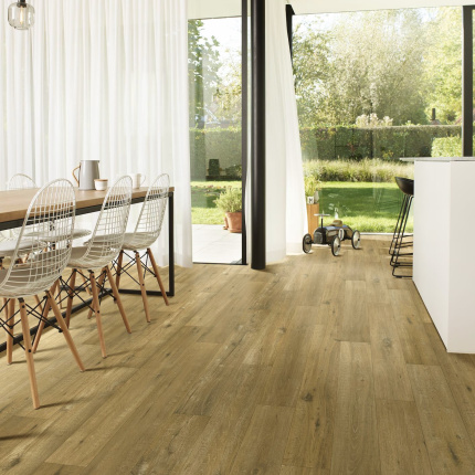 Sol lino, vinyle, PVC En rouleau Textile Haute Performance - Effet parquet chêne rustique
