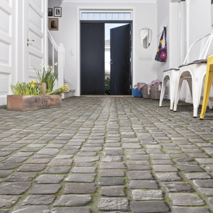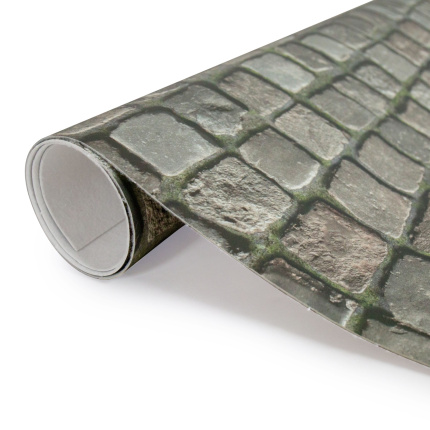 Sol lino, vinyle, PVC En rouleau Textile relief - Imprimé pavés anciens de ville