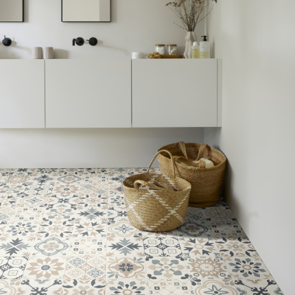 Sol Vinyle Textile - Relief 3D - Carreaux de ciment Capucine - Crème