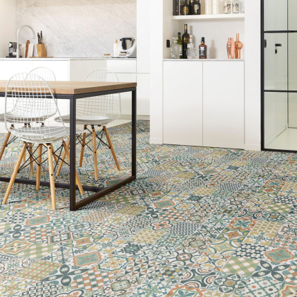 Sol Vinyle Textile - Relief 3D - Carreaux de ciment Élise - Multicolore