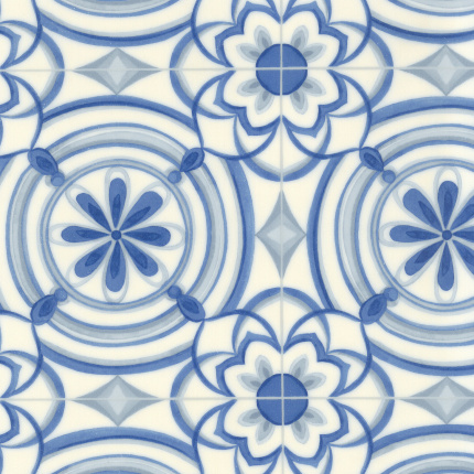 Sol lino, vinyle, PVC En rouleau Textile Rénove - Effet carreaux de ciment Andalousie bleu