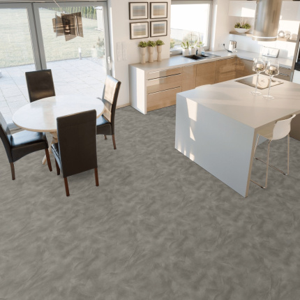 Ce sol vinyle haut de gamme, de style lino, à la finition mate, imite de façon très sophistiquée le béton lissé. Très agréable à la vue comme au toucher, ce revêtement de sol possède un envers textile gris et une forte densité, ce qui lui confère un très bon confort de marche et une excellente isolation phonique. Extrêmement doux, son envers textile gris permet de masquer les légers défauts d’un support irrégulier, ce qui rend ce produit idéal pour la rénovation de vos sols. Ce sol vinyle est adapté aux pièces de vie à fort passage comme le salon, la cuisine, le couloir ou la salle de bain (classe 23), ainsi qu’aux espaces professionnels à usage modéré tels que les bureaux, les boutiques ou les commerces (classe 32). Sa couche d’usure haute performance assure une protection durable contre la poussière et les salissures. Facile à entretenir à l’eau claire, sans produits agressifs ni entretien complexe, ce revêtement allie esthétique, hygiène et exigence en matière de qualité de fabrication ainsi que d’environnement.