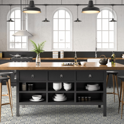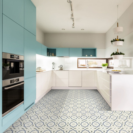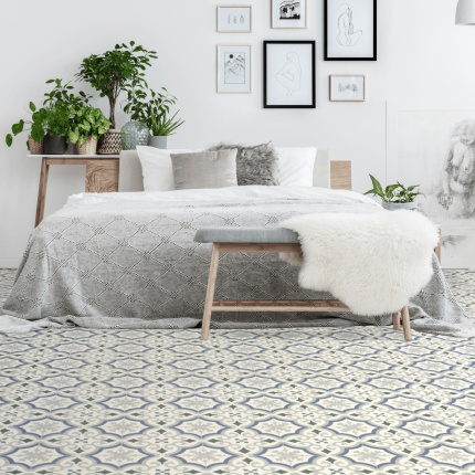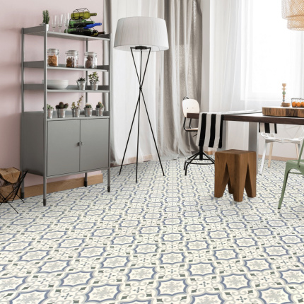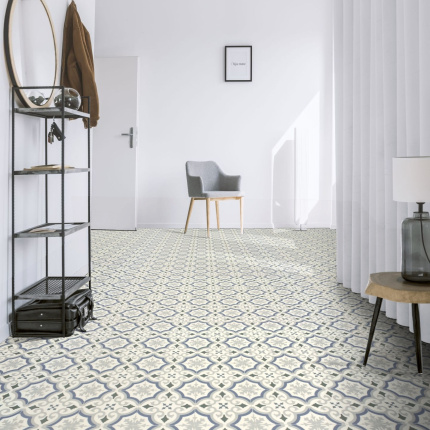 Sol Vinyle Textile Rénove - Effet carreaux de ciment arabesques - Bleu et gris