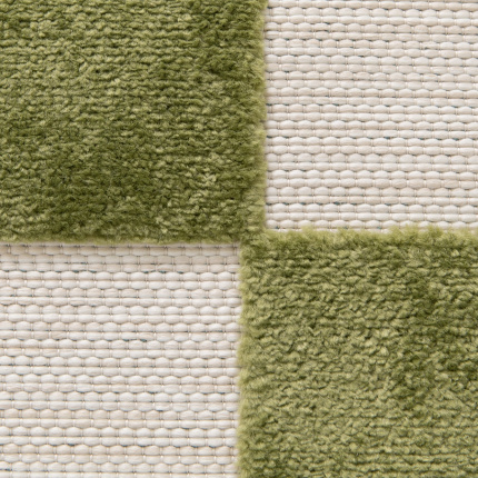 Ce tapis tendance affiche un motif en damier, composé de carreaux verts en poils ras sur un fond écru en tissé plat. Un design punchy idéal pour donner de la vitalité et de la bonne humeur à votre espace ! Il trouvera facilement sa place chez vous, que ce soit sur votre terrasse ou dans votre salon.
