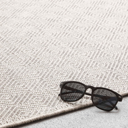 Tapis extérieur Tissé à plat, PVC Tapis de terrasse Prisma - Motif losanges beige