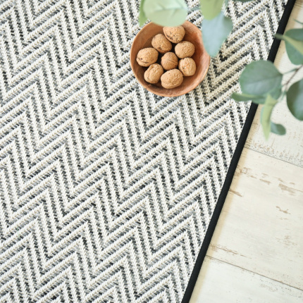 Tapis intérieur / extérieur - Java Chevron blanc - Galon noir