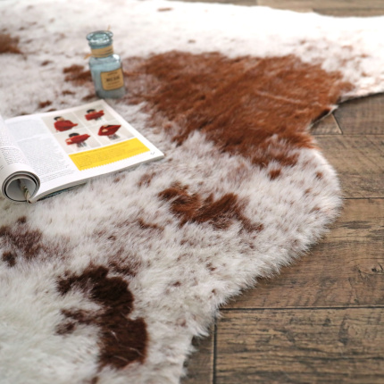 Tapis peau de bête - Imitation vache tachetée claire - Marron et blanc