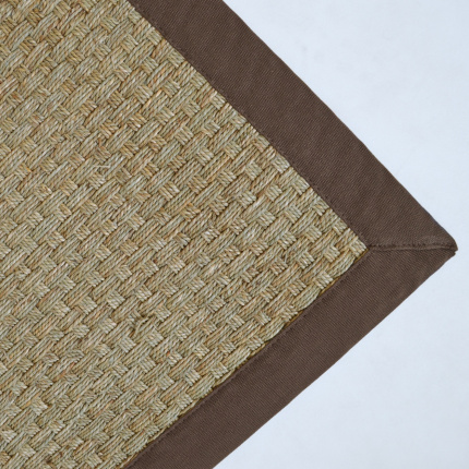 Tapis jonc de mer - Paro fin natté 4x4 - Ganse coton marron
