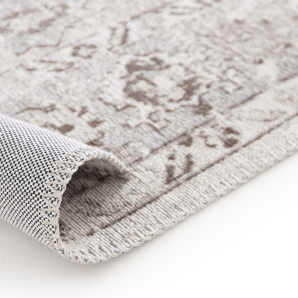 Tapis à motif oriental en tissu chenille recyclé - Yanis - Gris et brun