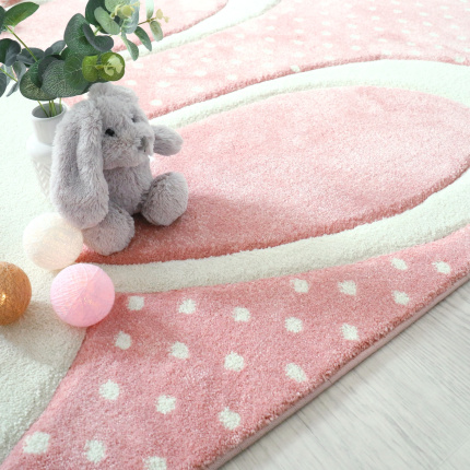 Tapis enfant fille Lapin blanc Rose pastel à pois - Mérinos Pastel Kids