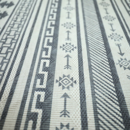 Tapis en coton blanc à franges - Aztèque - Motifs gris