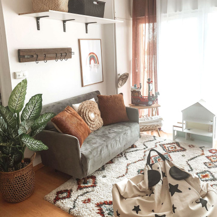 Confortable et d'inspiration ethnique, le tapis style Berbère apportera une touche chaleureuse à votre salon grâce à ses jeux de losanges colorés.