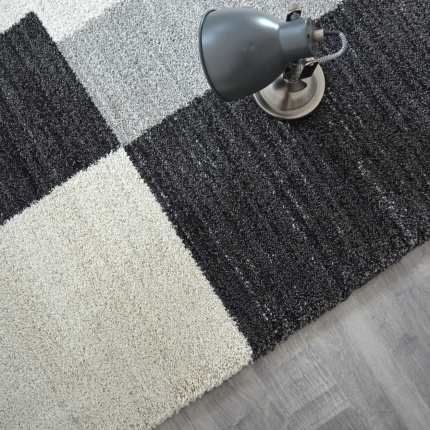 Tapis intérieur Shaggy et velours Tapis de salon Briques - Motif géométrique noir, gris & écru