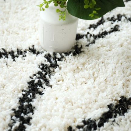 Tapis motif berbère à poils longs - Itahari - Noir et blanc cassé
