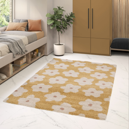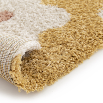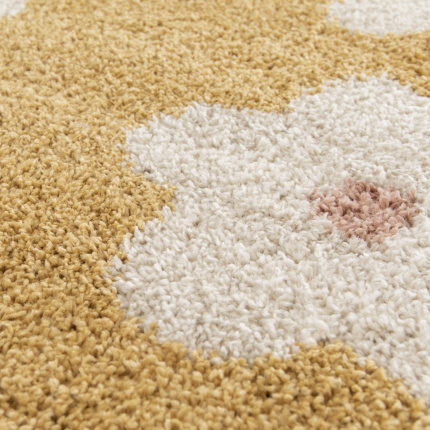 Tapis intérieur Shaggy et velours Tapis enfant Apolline - Motif fleur maximaliste jaune