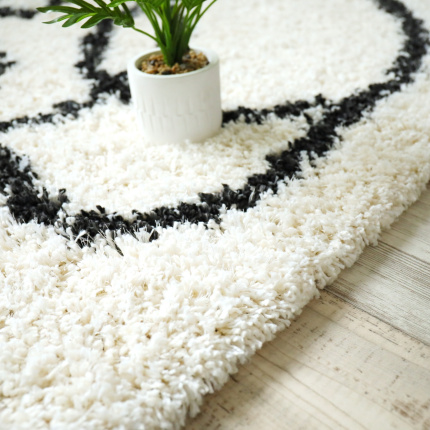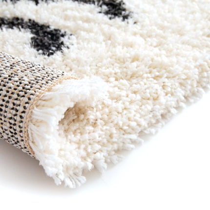 4. Tapis de salon à poils longs - Line art - Noir et blanc cassé