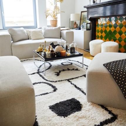 Créatif et adepte du noir et blanc cassé, ce tapis saura rythmer votre intérieur d'un esprit épuré Line Art très tendance. Ressemblant à un tableau abstrait, il conjugue confort et fluidité des lignes et deviendra la pièce maîtresse de votre salon.