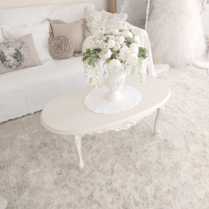 Tapis intérieur Shaggy et velours Tapis Médina - Motif floral oriental écru