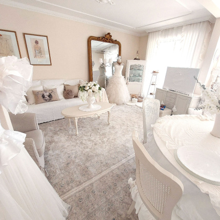Magnifique tapis de teinte pastel ,écru et gris qui s'accorde dans tous les styles