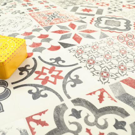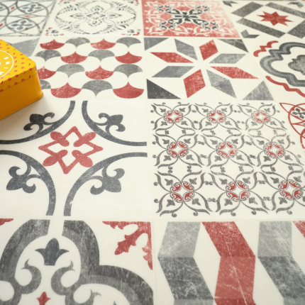Tapis Vinyle - Carreaux de ciment - Rouge brique
