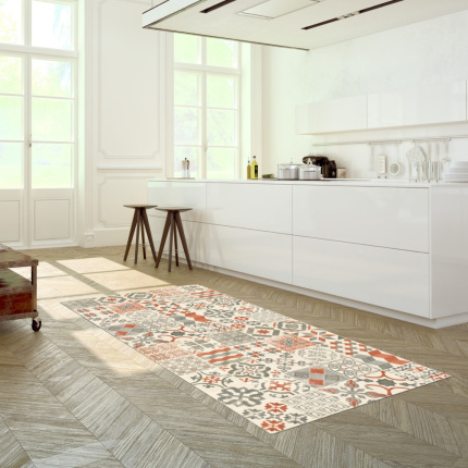Tapis intérieur Tissé à plat, vinyle, PVC Tapis Carreaux de ciment - Motifs vintage terracotta