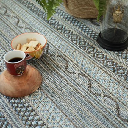 Créez votre tapis, dimensions et finitions personnalisables, prix au m². Fabriqué en Belgique, ce revêtement de sol tissé plat 100 % polypropylène est extrêmement résistant à l’usure et facile à entretenir. Une matière très chic, adaptée aux sols intérieurs comme extérieurs, tissée avec un mélange harmonieux de fils de couleurs dans un esprit ethnique très actuel. Ce sol classé GUT respecte l’environnement et votre santé.