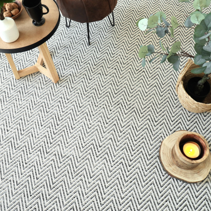 Tapis sur mesure Tissé plat - Java Chevron - Blanc
